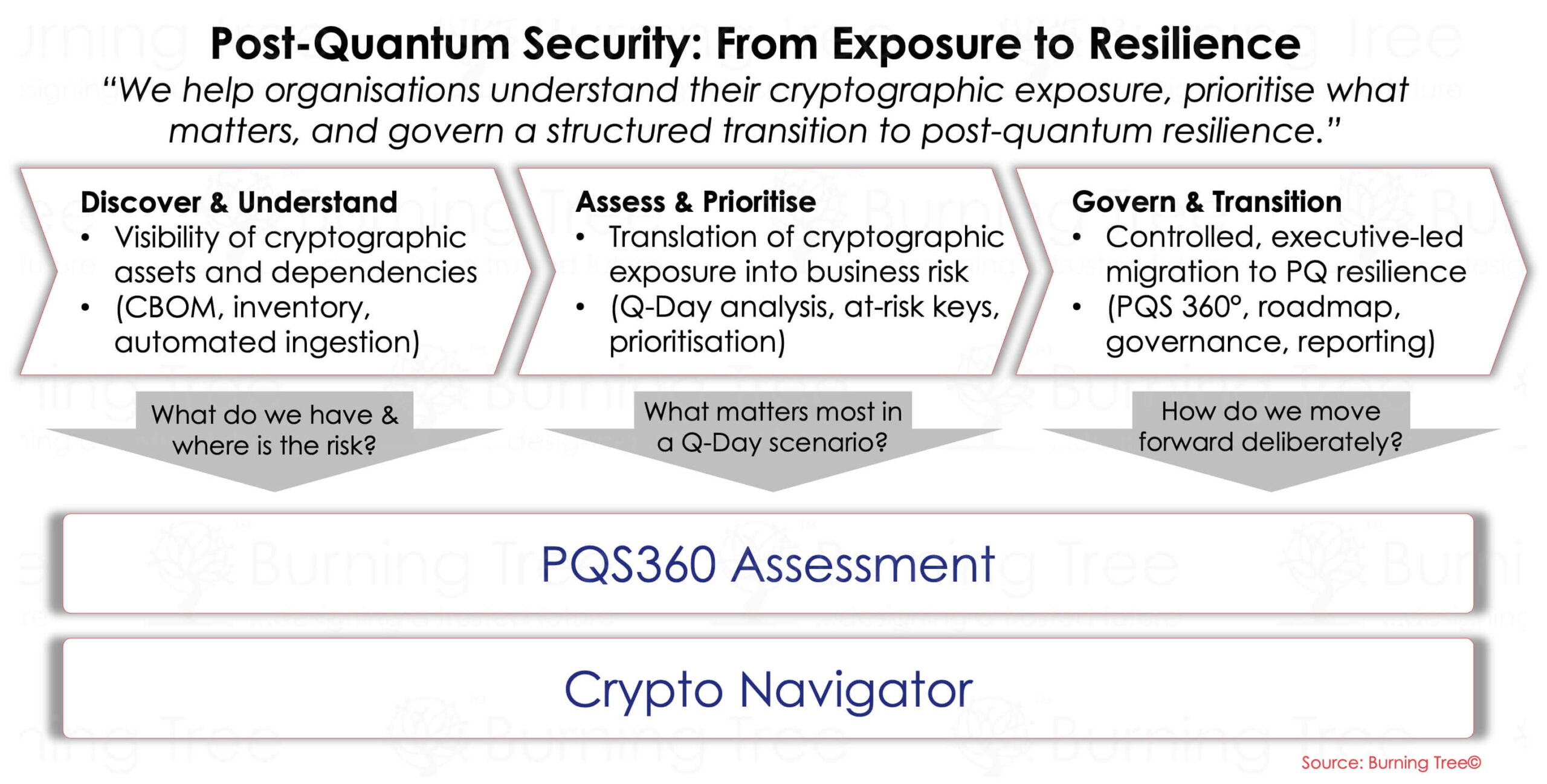 Post-quantum security demands calm leadership and long-term thinking. Burning Tree brings: